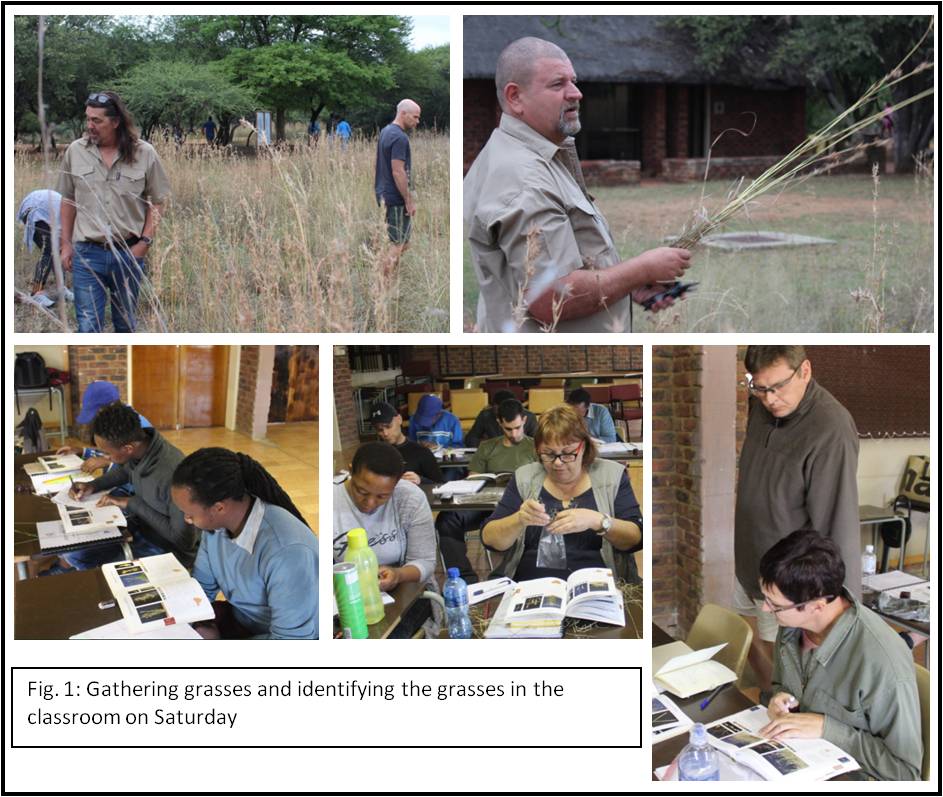 Before we knew it, she announced the first break. Time sure flies when you are having fun! We were given the task of gathering grass species to identify in the classroom. We were guided by Mary and the HO’s in identifying the grasses correctly, by looking at the different types of inflorescences, such as foxtail; finger; Christmas tree and complex head grasses. We were all able to identify the grass species that we collected.