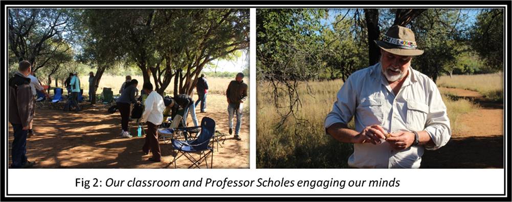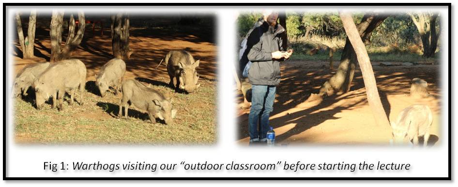 Saturday morning started at 08:00 in a spectacular classroom – the great outdoors. We were fortunate enough to meet some warthog just before starting the lecture. Bob has a teaching style similar to that of the late philosopher Socrates, and he strongly believes that using all your senses will enhance your learning experience.