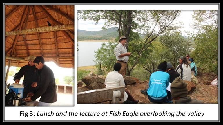 In the blink of an eye it was lunch, and much like the rest of the lecture, lunch was different this weekend. We packed up and left for the Fish Eagle picnic spot where we could enjoy our lunch, and afterwards have a short lecture on the landscape that we could see from the picnic site.