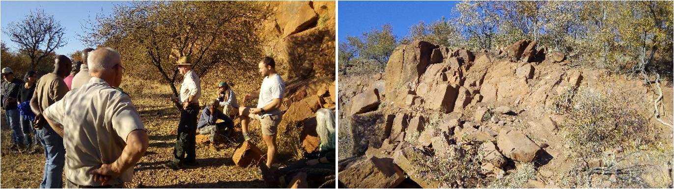 After a full day of lectures, we were taken to a site to try and identify the type of rock. It’s not nearly as easy as you might think, and I reckon it takes a lot of practice to be able to identify and distinguish between the different rocks. Prof Nex  explained ‘horizontal bedding’ to us as it was clearly visible on the rock face. As the sun started setting some of the students went up to the top of Pitjane Hill to appreciate the view over the Klipvoor dam and Borakalalo. It must be one of the most diverse parks in the country.
