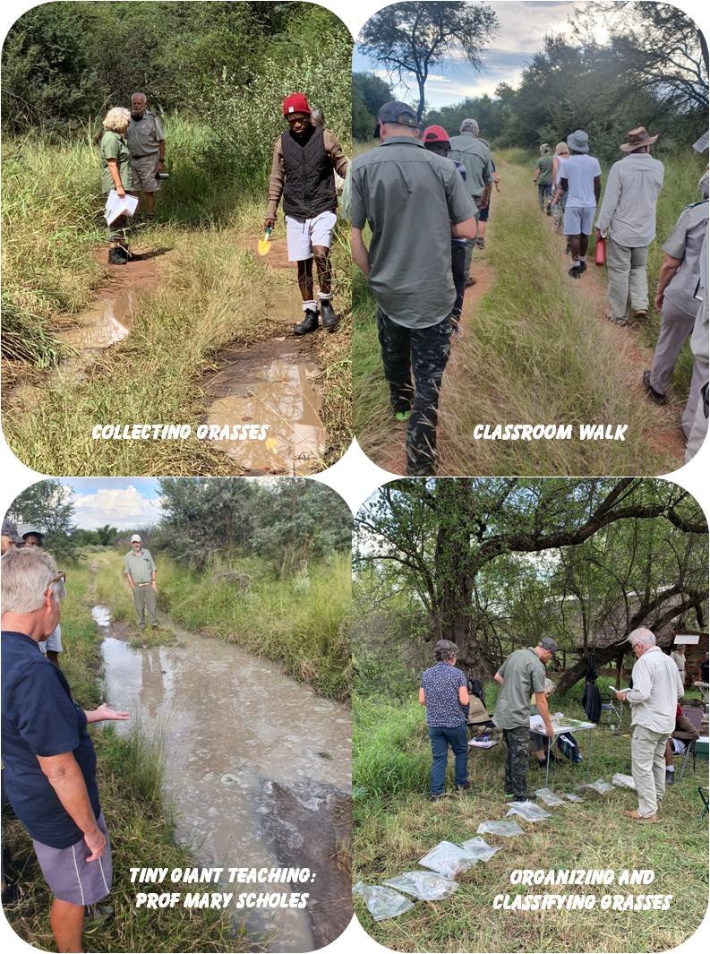 The identification of grasses was practical and hands-on. We started to venture out together for the first time this year in our allocated groups and started to pick and dig up different grasses. On our return to the classroom tree, we then had to start identifying our picks. Prof Scholes and the Mosaic coordinators were at hand to help us, but it was also encouraging to see that even these experienced folks sometimes had to double-check, consult each other and rethink their initial id’s! But by Sunday lunchtime we had identified no less than 29 species and proud of it!