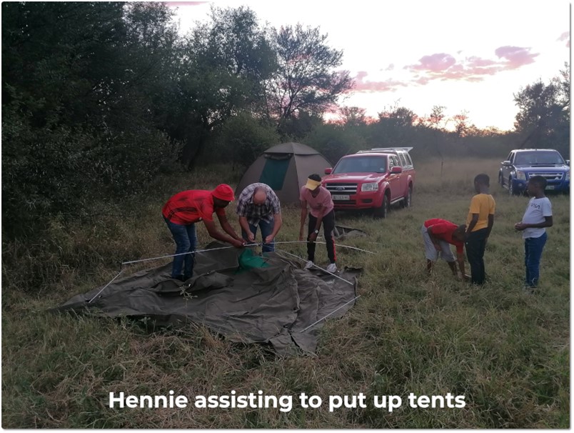 Borakalalo was the venue for our fourth module of the year, this time to learn all about trees! The team started arriving in the early afternoon on Friday and soon all tents were pitched with the rain staying away. Our lecturer for the weekend, Hennie de Beer, imparted some knowledge on the fastest way of putting up a canvas tent.