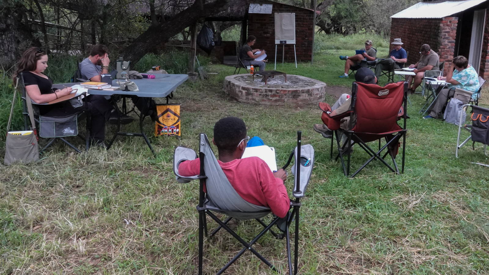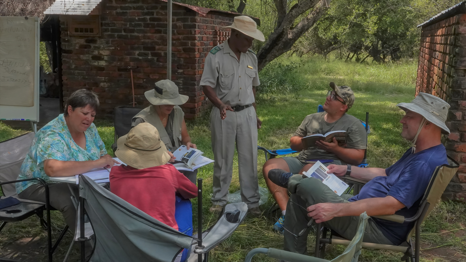 Unfortunately, Peter found the test papers again, and we wrote the test on Saturday morning before our lecture on grasses commenced. How blessed were we to write a test in such a setting! No clinical classroom or lecture hall – just a peaceful and tranquil environment, close to nature, with Fish Eagles and Kingfishers reminding us how lucky we are. I am sure we can argue to write future tests in the same way.