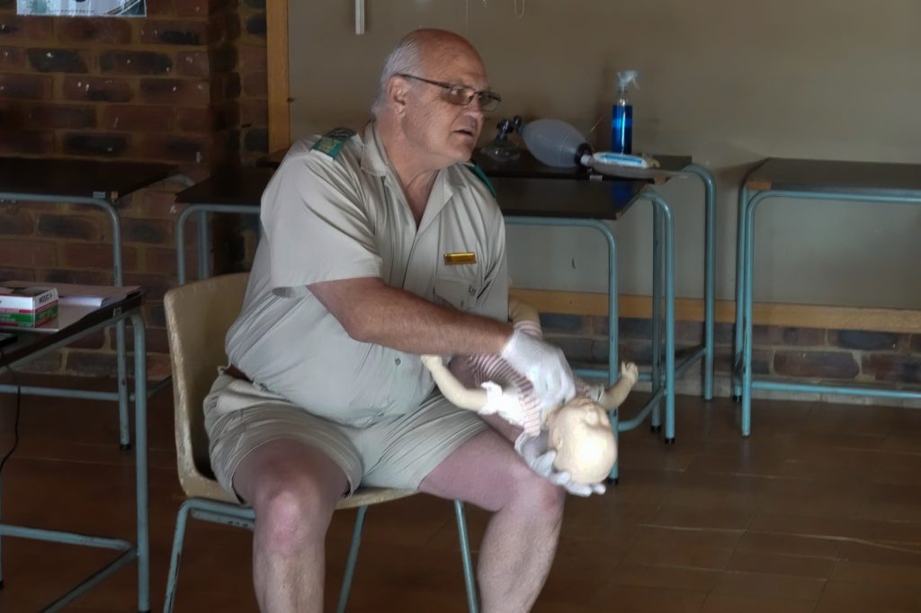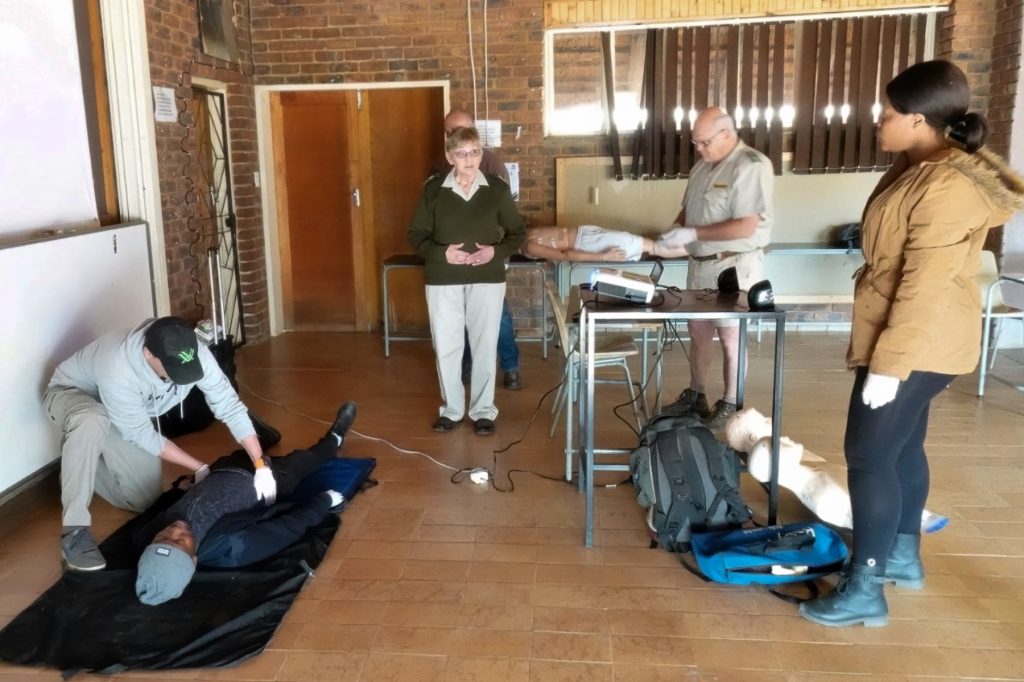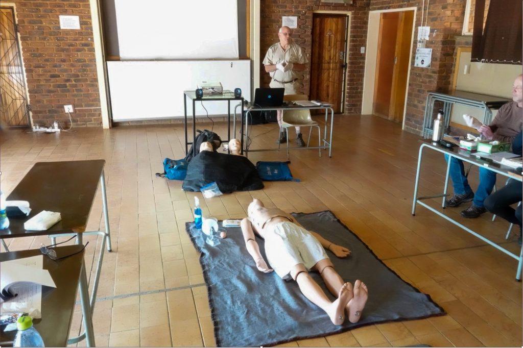 On Saturday morning, we headed back to the Education Centre for training to commence at 08:00. We had to go with our food for the day because there was limited time for us to go back to the camp site. For today it was both practical and theory sessions. We started off with theory on primary assessment with the HHHH process. HHHH meaning check for Hazards, say Hello, get the History and call for Help. We were also taught basic CPR (cardiopulmonary resuscitation) based on compressions on the chest, clearing the airway and giving rescue breaths if not breathing.
