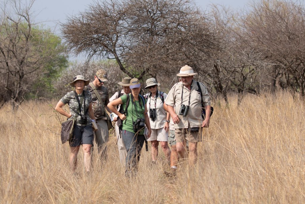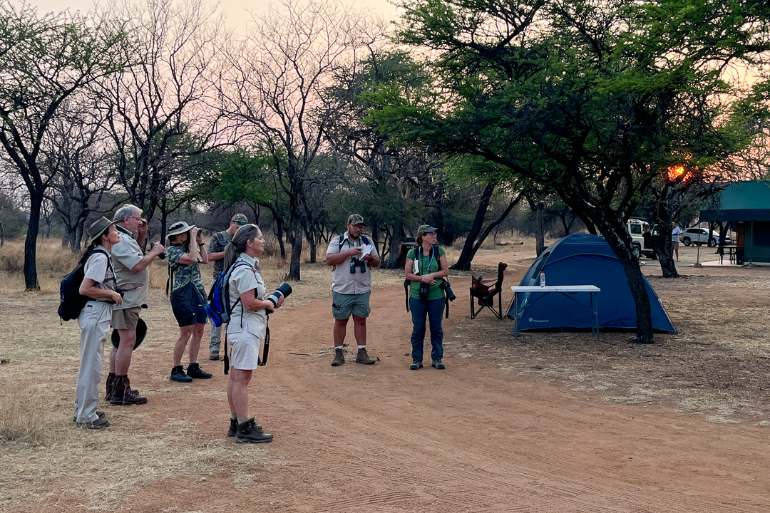Indeed, birds were flying and calling from everywhere around us in this early morning bird chorus. We then headed toward the gate to get out of the camp. We had a lovely walk in the bush, learning about birds along the way.