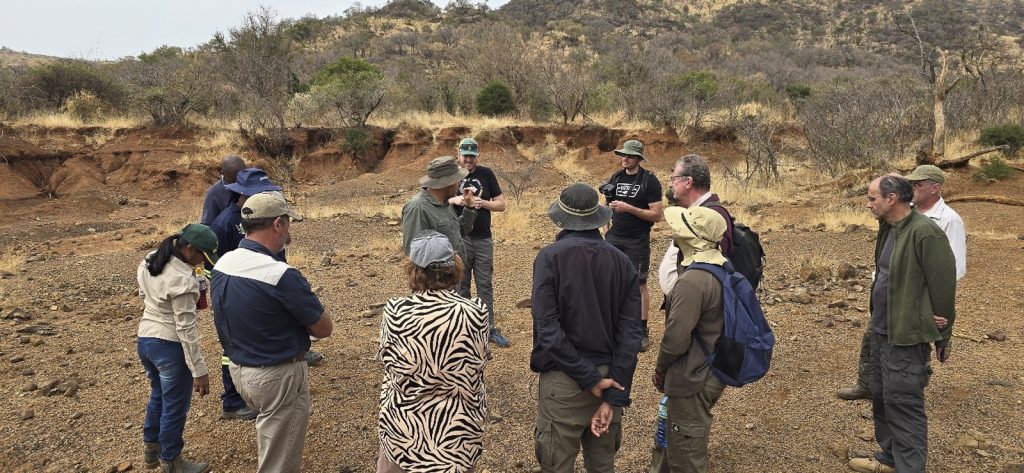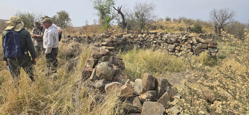 After lunch, we were joined by the rifle backup team, who provided us with excellent safety instructions for our visit to two late Iron Age sites belonging to the Tswana people of the BaKgatla. These two sites are known as the late Moloko phase, and settlements had stone walls to demarcate social areas.