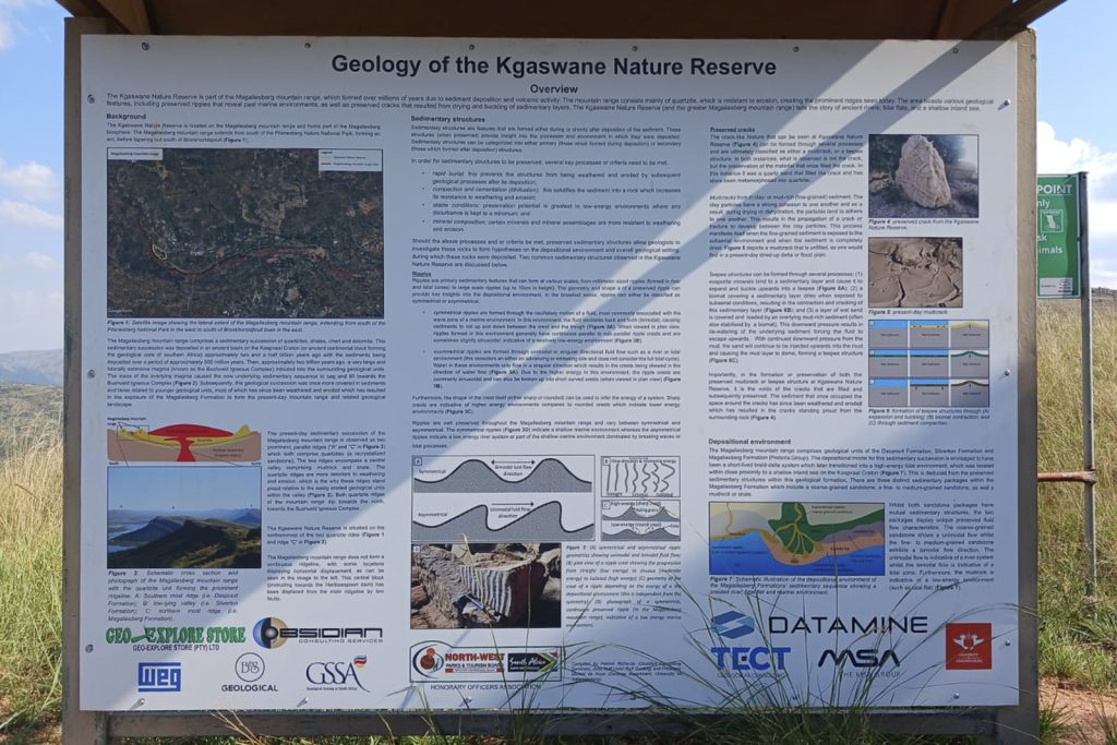 The drive to Kgaswane was pleasant, as the N4 from Pretoria was not riddled with potholes, unlike my experiences on the roads to Pilanesberg and Borakalalo. Even more pleasant was the view of the recently installed Geology board at the entrance of Kgaswane.