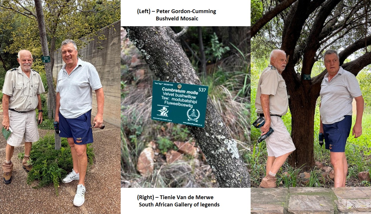 To bring this idea to life, we partnered with South African Gallery of Legends, Tienie’s company, and Bushveld Mosaic’s sponsor at Freedom Park. With the help of Lauren L’Ange, an initial set of 15 tree identification tags were researched, produced, and then installed during our Mammals lecture on Saturday, 17 January.